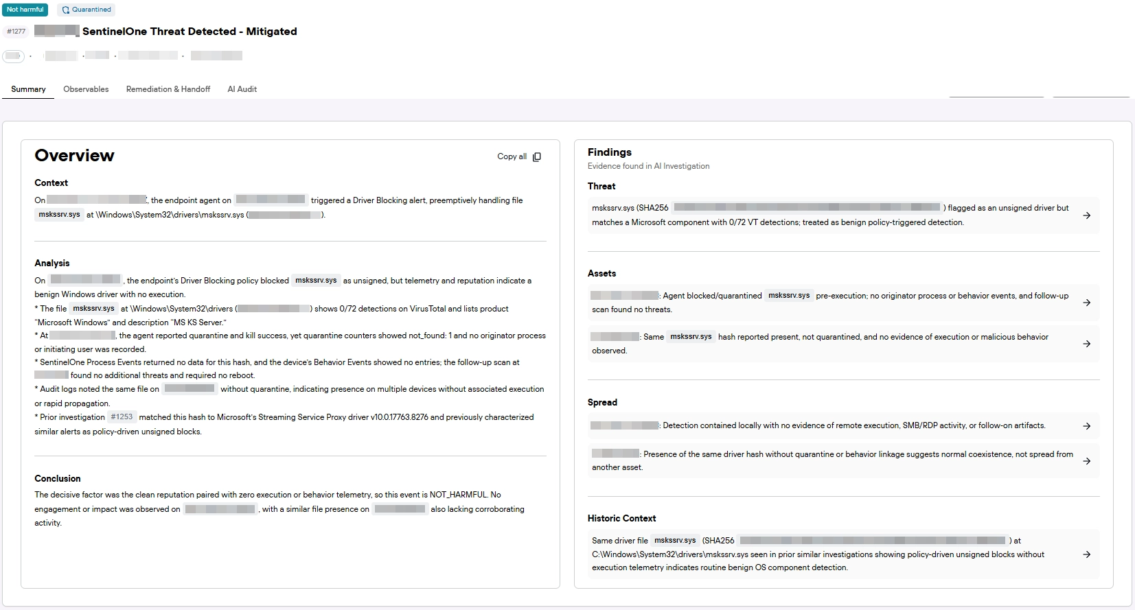 "mskssrv.sys previously identified as routine benign OS component."