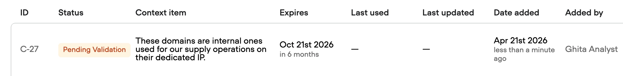 | Approve | Context is accurate and well-scoped | Context becomes active, analyst notified |